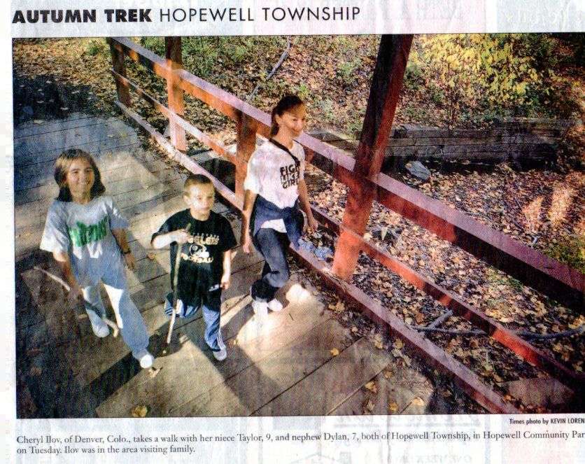 The next day people all over the County were greeted with a picture of the three of us on the front page of the Times. My niece and nephew were local celebrities. I was their Awesome Aunt Cheryl from Colorado that picked them up after school, knew how to do cartwheels, taught them how to be Ninjas, and got their picture in the paper. In the meantime, I was kicking myself for wearing a T shirt that afternoon instead of the pretty pink blouse I wore the day before.